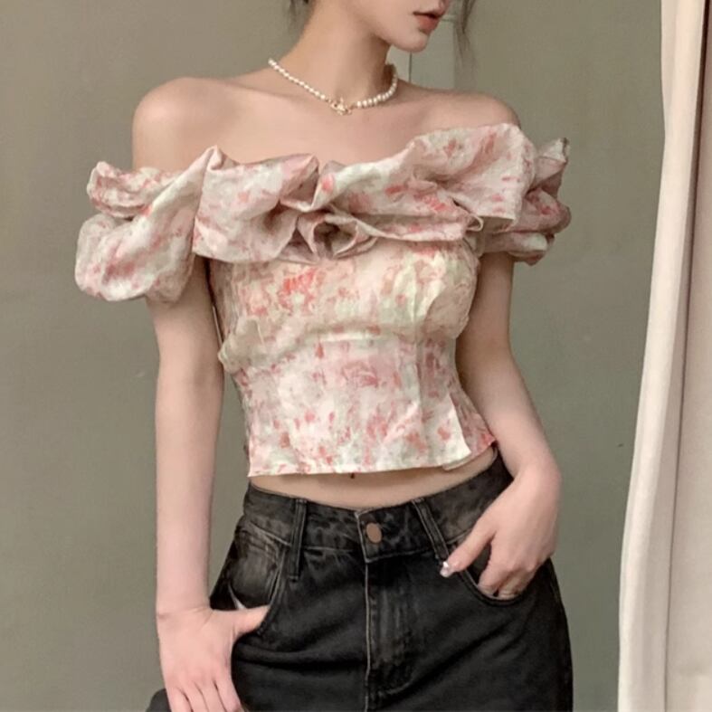 レディース トップス ブラウス ミニ ショート オフショルダー スリム 細身 スマート フェミニン 薄手 かわいい 大人可愛い きれいめ シンプル カジュアル 上品 おしゃれ レトロ こなれ感 ラフ ガーリー ルーズ 個性的 エレガント モダン 主役級 存在感 とろみ感 抜け感 ラブリー キュート 都会的 ベーシック アクティブ ロマンティック 花柄 フラワー 夏 デート お出かけ リゾート ビーチ 女子会 休日 バカンス ショッピング カフェ コーデ 普段使い モテ トレンド インスタ映え S M L