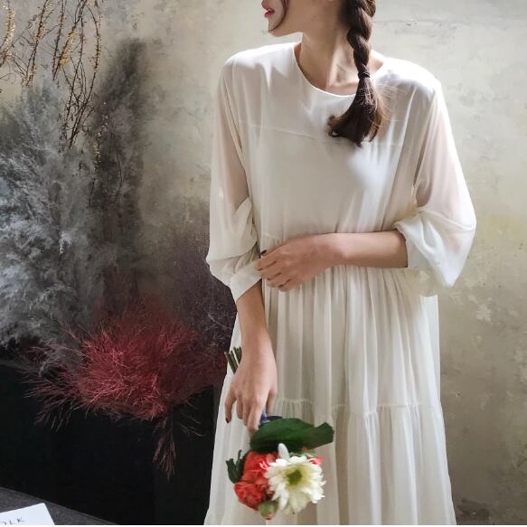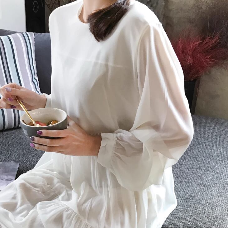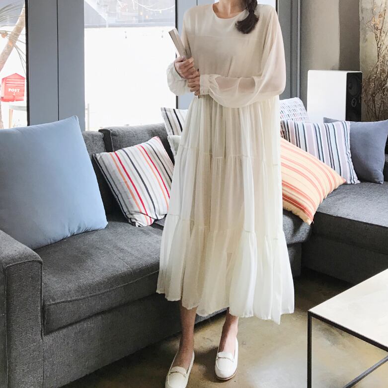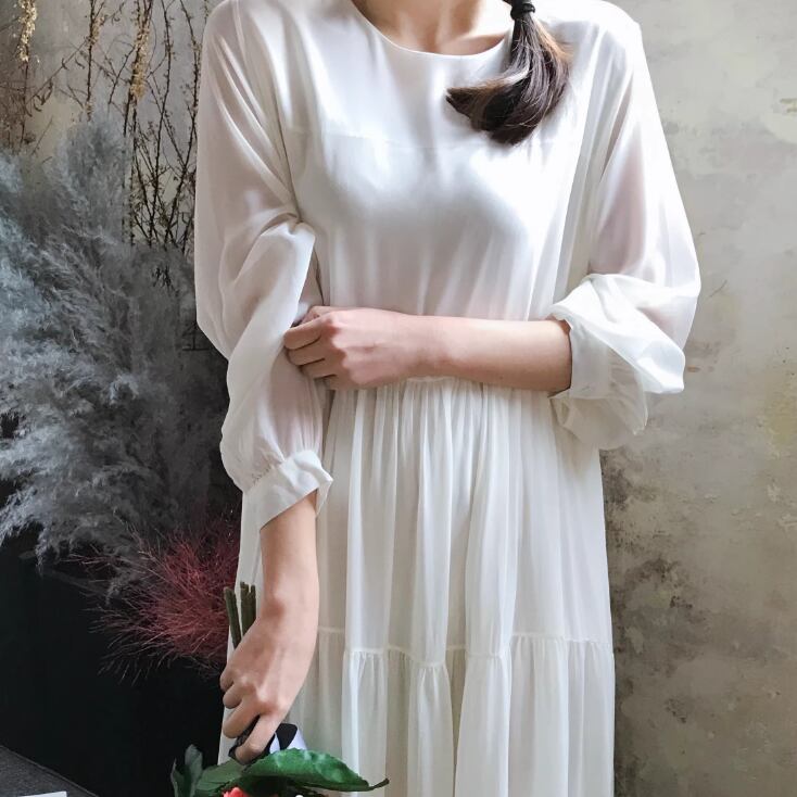 レディース スカート ワンピース プルオーバー ロングスカート ミモレ 長袖 ラウンドネック シフォン 透け感 薄手 かわいい 大人可愛い きれいめ シンプル カジュアル 上品 おしゃれ レトロ こなれ感 ラフ ガーリー ルーズ 個性的 エレガント モダン 主役級 存在感 とろみ感 抜け感 ラブリー キュート ベーシック ロマンティック ナチュラル 無地 春 秋 デート お出かけ 休日 ショッピング 楽ちん 体型カバー 普段使い モテ 清楚 インスタ映え S M L XL ゆったり ゆる ミルキーホワイト