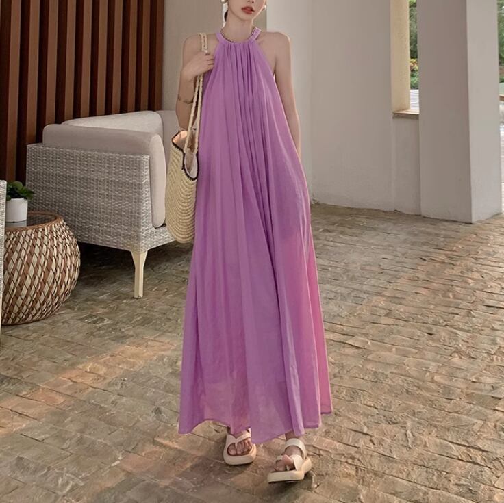 レディース ワンピース ロングワンピース ロング マキシ 袖なし ノースリーブ ホルターネック かわいい 大人可愛い シンプル 上品 おしゃれ ガーリー 存在感 抜け感 ラブリー キュート ベーシック ナチュラル リラックス 無地 春 夏 秋 ロングシーズン 学生 デート お出かけ リゾート 海 プール ビーチ 女子会 休日 ショッピング コンサート ライブ お花見 カフェ 重ね着 韓国 オルチャン コーデ 楽ちん 体型カバー プチプラ 普段使い 着回し モテ 清楚 インスタ映え S M L ゆったり