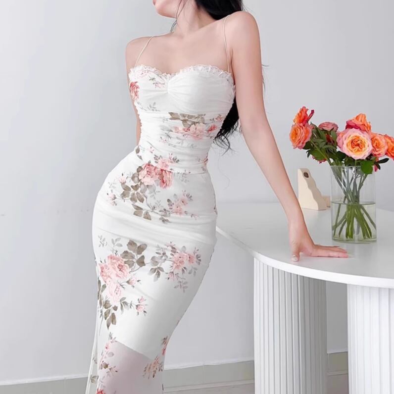 レディース スカート ワンピース ドレス サスペンダードレス ロングスカート ミモレ 袖なし ノースリーブ 襟なし タイト スリム 細身 ハイウエスト 透け感 薄手 かわいい 大人可愛い きれいめ シンプル カジュアル 上品 おしゃれ レトロ ガーリー 個性的 モード系 エレガント モダン 主役級 存在感 とろみ感 抜け感 ラブリー キュート ロマンティック ナチュラル 花柄 フラワー 夏 パーティー イベント リゾート ビーチ 休日 バカンス コーデ 美脚 脚長 モテ トレンド インスタ映え S M L