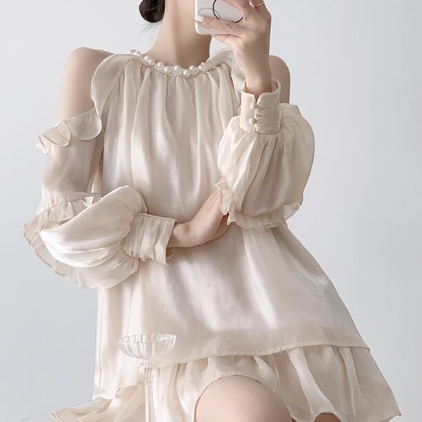 レディース スカート ワンピース ドレス ミニスカート ミニ ショート 長袖 ホルターネック オフショルダー フェミニン フリル 薄手 サテン かわいい 大人可愛い きれいめ シンプル カジュアル 上品 おしゃれ レトロ こなれ感 ラフ ガーリー ルーズ 個性的 モード系 エレガント モダン 主役級 存在感 とろみ感 抜け感 ラブリー キュート ロマンティック お出かけ パーティー イベント 休日 ホテル 発表会 コーデ 美脚 脚長 モテ 清楚 インスタ映え S M L ゆる オフホワイト パープル